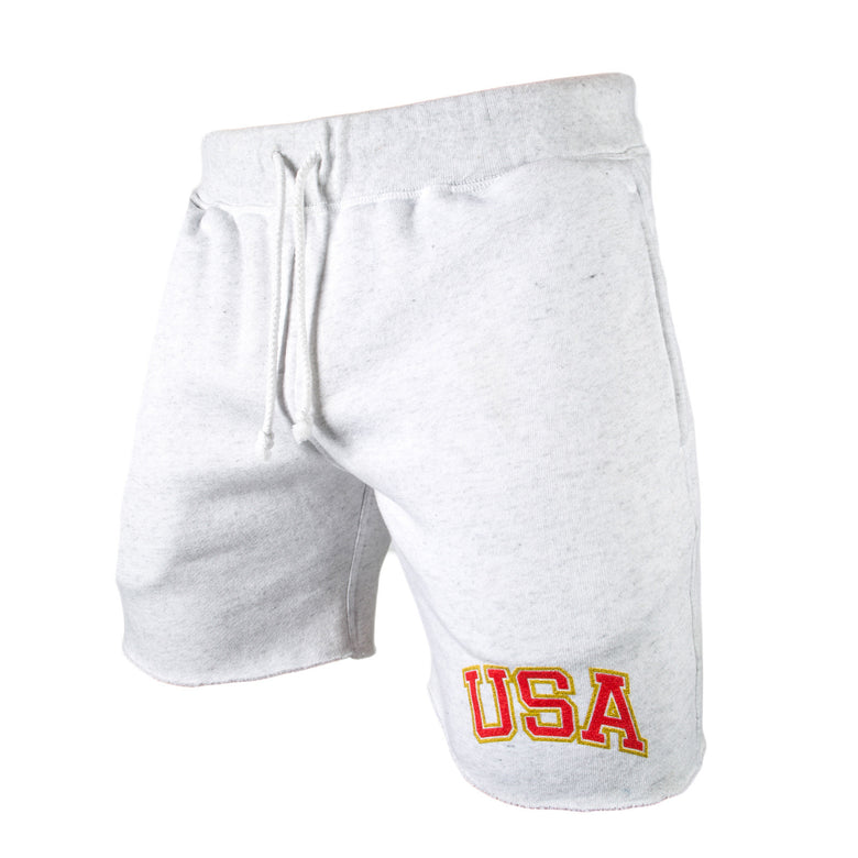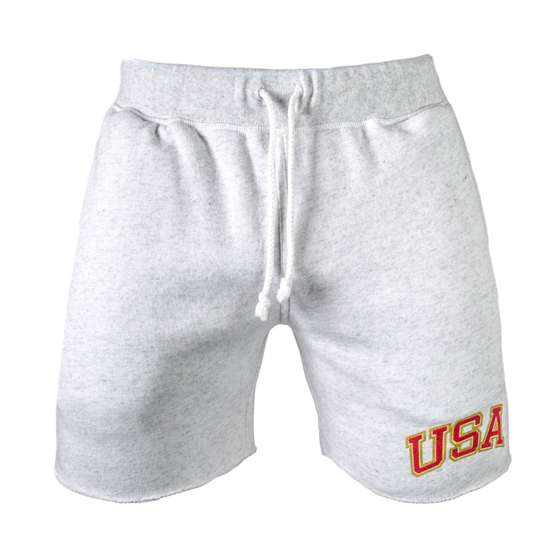 The sweat shorts are heather gray.