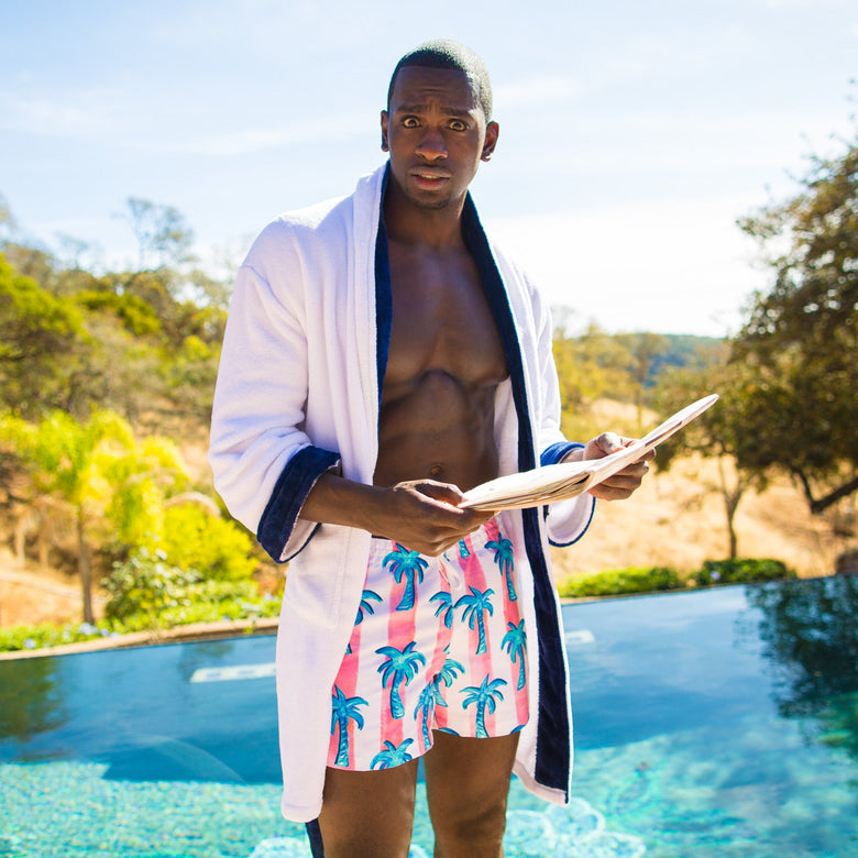 Yes, these pink-stripe-and-palmed swim trunks were inspired by famed 17th-century Rococo artist Jean-Antoine Watteau. Thank you for noticing.