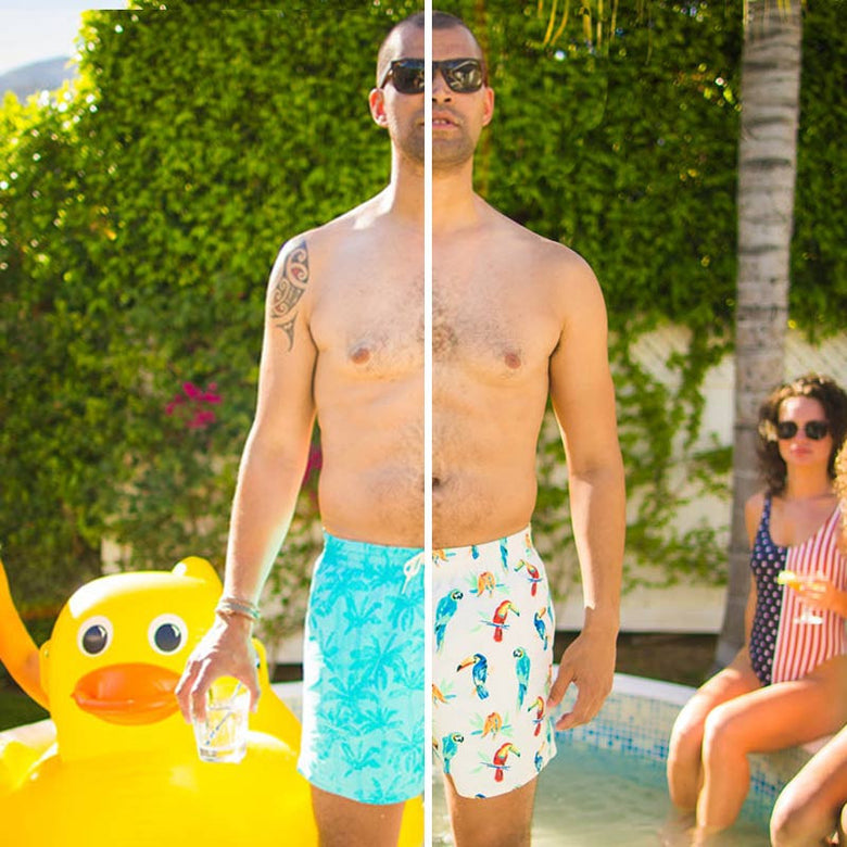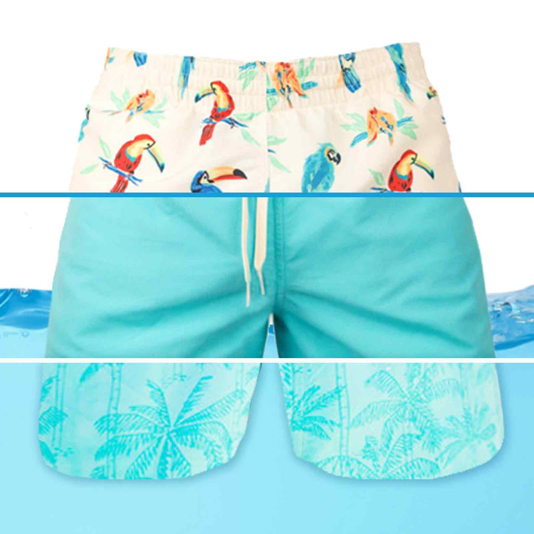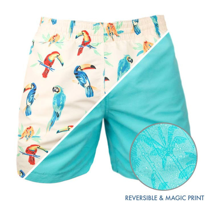 HOW DO THEY WORK? One side has parrots. Everyone loves parrots. The other side is solid blue, BUT WAIT(!!!) — get that blue side wet and they'll magically reveal some tropical palm trees. Next 3-day weekend, bring The Flippin The Birds, plus a bag of pretzel rods, and you're set.