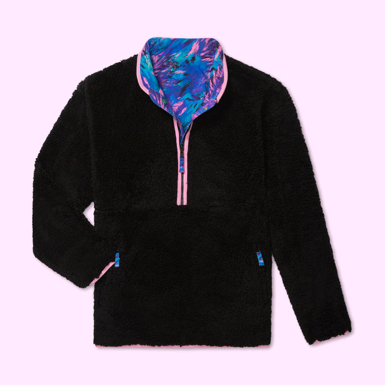 2 front zipper pockets on fleece side. 1/4 Zip style with YKK zippers and extra snaps for ultimate warmth on the windbreaker side.