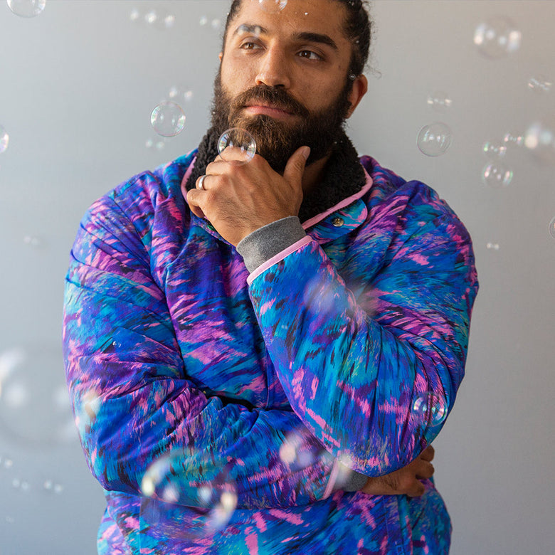 One side super soft fleece, one side water and wind resistant to keep you warm and dry in every condition