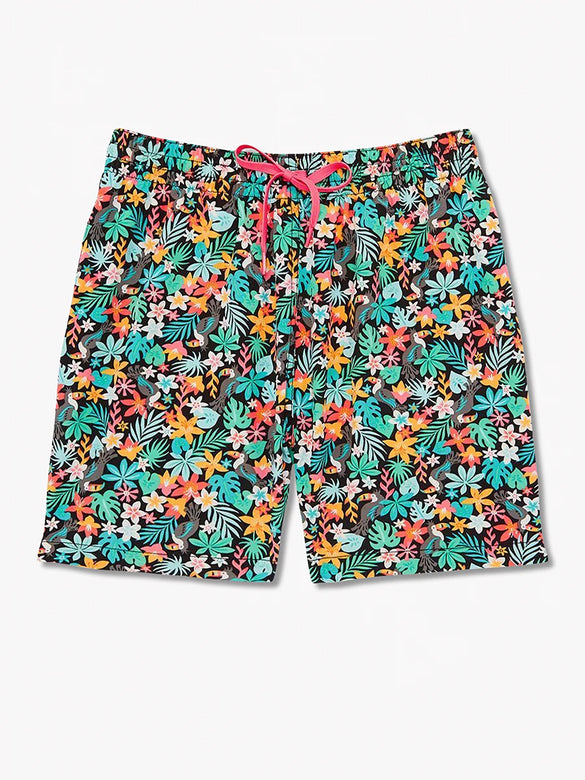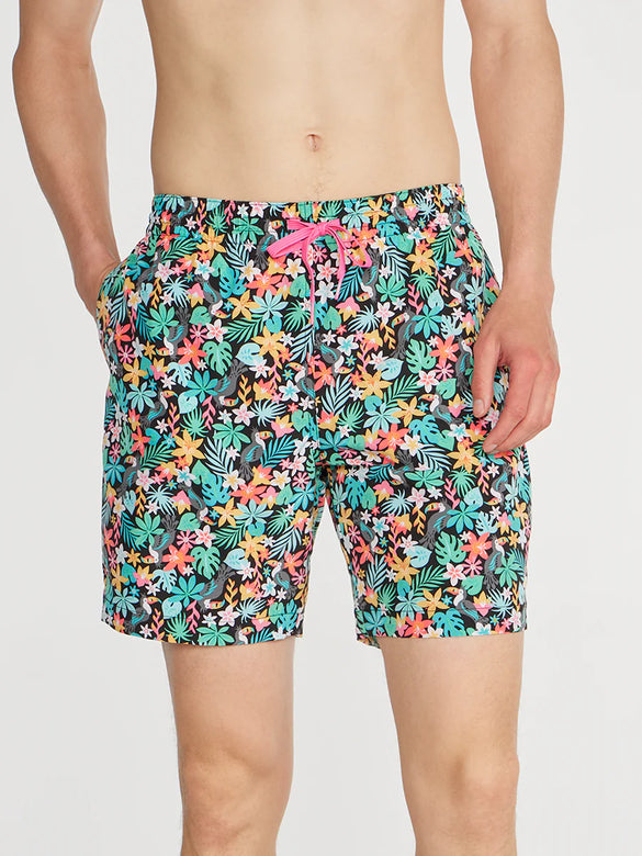 These jealousy-inducing trunks feature an ultra quick drying shell, mesh basket liner and a zipper back pocket. Not to mention the elastic waistband and build-in drawstring designed to keep your trunks secure from the swim up bar all the way to the all you can eat crab leg buffet.