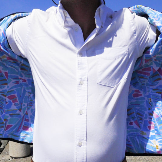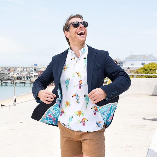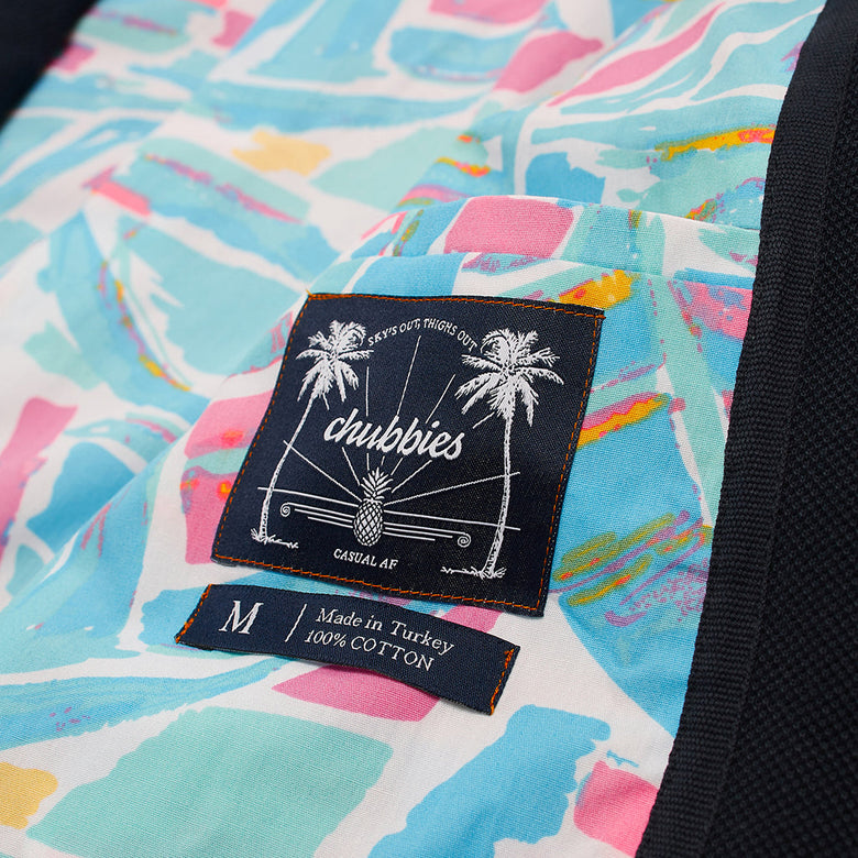 Includes a classic Chubbies print on the inside and an embroidery on the inside of the collar.