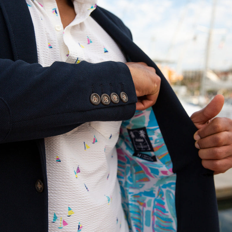 100% Cotton Pique Blazer that gives it a fancy textured feel.
