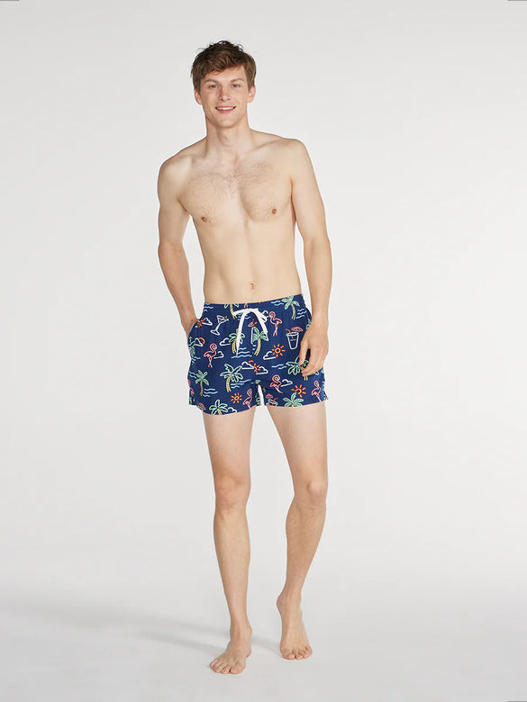 These jealousy-inducing trunks feature an ultra quick drying shell, mesh basket liner and a zipper back pocket. Not to mention the elastic waistband and build-in drawstring designed to keep your trunks secure from the swim up bar all the way to the all you can eat crab leg buffet.