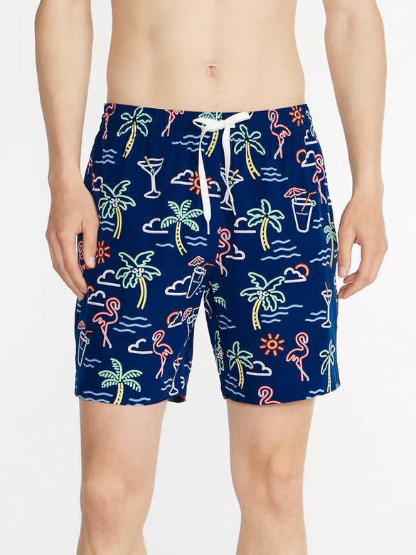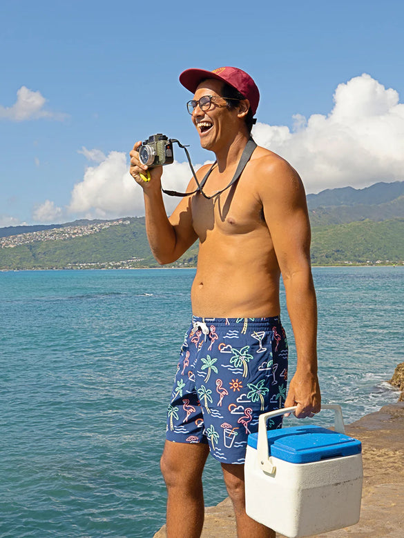These jealousy-inducing trunks feature an ultra quick drying shell, mesh basket liner and a zipper back pocket. Not to mention the elastic waistband and build-in drawstring designed to keep your trunks secure from the swim up bar all the way to the all you can eat crab leg buffet.